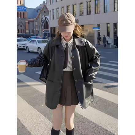 新款法式复古皮衣外套女宽松显瘦百搭上衣,秋冬天必入手的皮衣,料子软软糯糯很舒服,没有异味,很耐脏,而且特别好打理,从细节彰显气质,简直百搭款式!【赠退货宝】下单链接: https://uland.taobao.com/item/edetail?id=5ngWROGACxty2mDr6eBF7vdcMtV-jGwQkK5TddgdoM8ZIzQ
