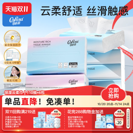 可心柔婴儿云柔巾保湿110抽6包新生儿适用