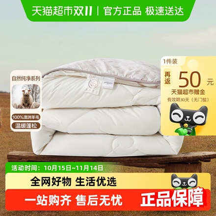 【原价319,150立减,领5元券,凑单猫超惊喜券38.28,88vip下单95折,叠加猫超卡50,叠加淘金币预估到手62左右】水星羊毛被,全国被芯销量第.1,原生澳毛,纯净好睡眠,自然好透气,身体不粘腻!下单链接: https://uland.taobao.com/item/edetail?id=nnR8dx2FMt3ye6WDdVtkZnh0tP-WqGXOmeuQQjJbBG6Cm7