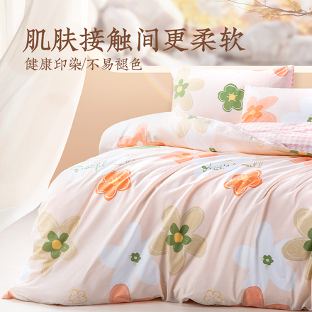 【国补126】远梦网红简约套床纯棉套装,多款花色可选,40支经纬编织斜纹工艺织造,每平方英寸205根棉纱,肌肤触感平滑细腻,光泽温润。采用活性染料印染,图案鲜艳清新,水洗后不易褪色。下单链接: https://uland.taobao.com/item/edetail?id=7bKqA06i4t52XDXAxrSn3KCMtV-aRG5QXwIYrX2ZRzpsz