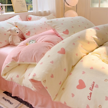 冬季牛奶绒高克重四件套荷叶边床品