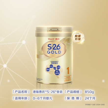 惠氏S26港版金装1段婴幼儿奶粉850g*6罐