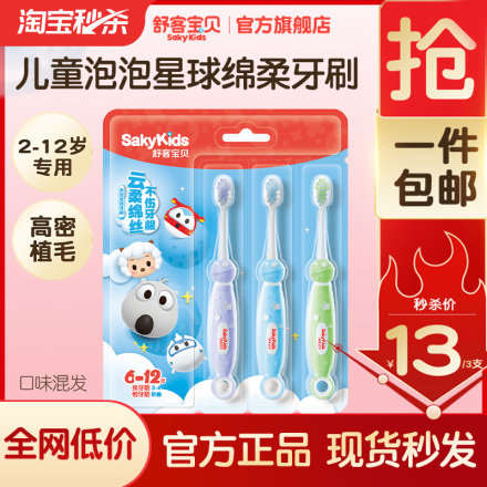 【下单立减30!88vip到手12.25,9折券后三支11.03!一支3.67!】舒客宝贝泡泡星球儿童牙刷分龄6-12岁换牙期3支装!下单链接: https://uland.taobao.com/item/edetail?id=BAJNgZXWc6t8ONvMZdrhpKXsrte-7no8vaXHORYOoXAeu7