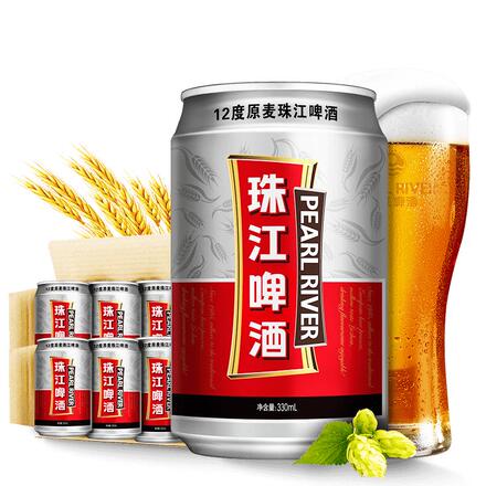 12度珠江原麦啤酒整箱330mL*24罐*2箱