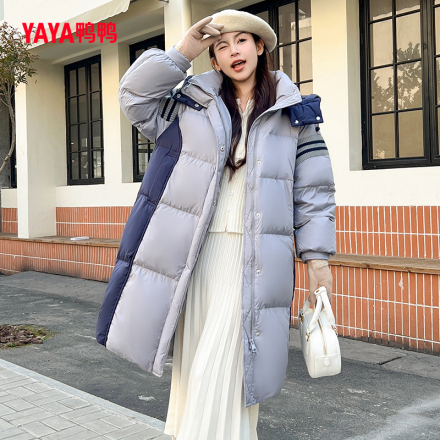 【鸭鸭官旗】中长款潮流撞色羽绒服