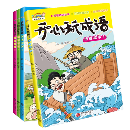 开心玩成语系列,一套4本。单本98页加厚版,每本都是彩图注音孩子阅读无压力。漫画版本,让孩子一边看漫画,一边玩着学成语。下单链接: https://uland.taobao.com/item/edetail?id=aqzmMOMHotMvG9wXWdCQYNfjty-88DbxaKC0M63YAGZcAr