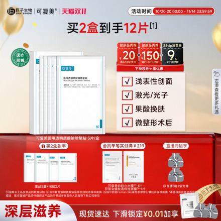 【首单4+88vip95折消费券+淘金币区抵扣13.14+限时补贴44+健康购物券20.12片修复贴+入会满219加赠可复美吨吨小水膜1片+可丽金高保湿面膜1片】修复肌肤屏障深层补水舒缓肌肤~下单链接: https://uland.taobao.com/item/edetail?id=ZXn9WwZt6tP8XMQYBpTBxptVt6-Q0GkBmxsbWPOBajZCA