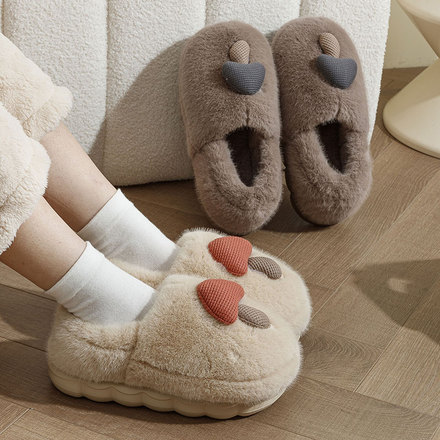 超暖!包跟保暖毛毛绒棉拖鞋