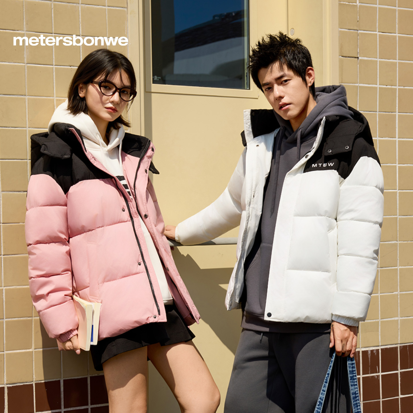 美特斯邦威拼接撞色棉服男女同款