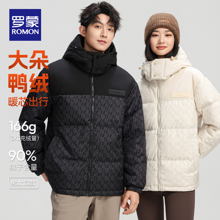 罗蒙加厚拼色羽绒服 短款连帽 防寒鸭绒外套