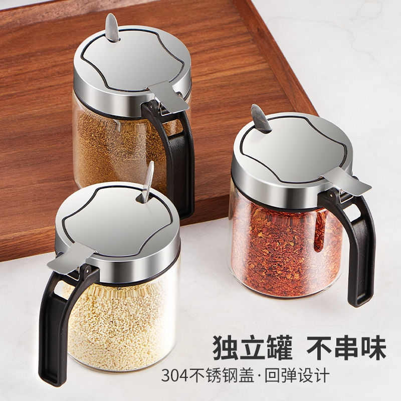 工学手柄设计握感舒适使用轻松,赠304不锈钢小勺,质地坚硬不易弯折,304不锈钢盖,·回弹设计,单手开盖弹簧设计关闭自动回弹下单链接: https://uland.taobao.com/item/edetail?id=YJk7V9ZHptXGzWKaxYhW0vI2t6-aRG5QXwIj9vP52dZsgw