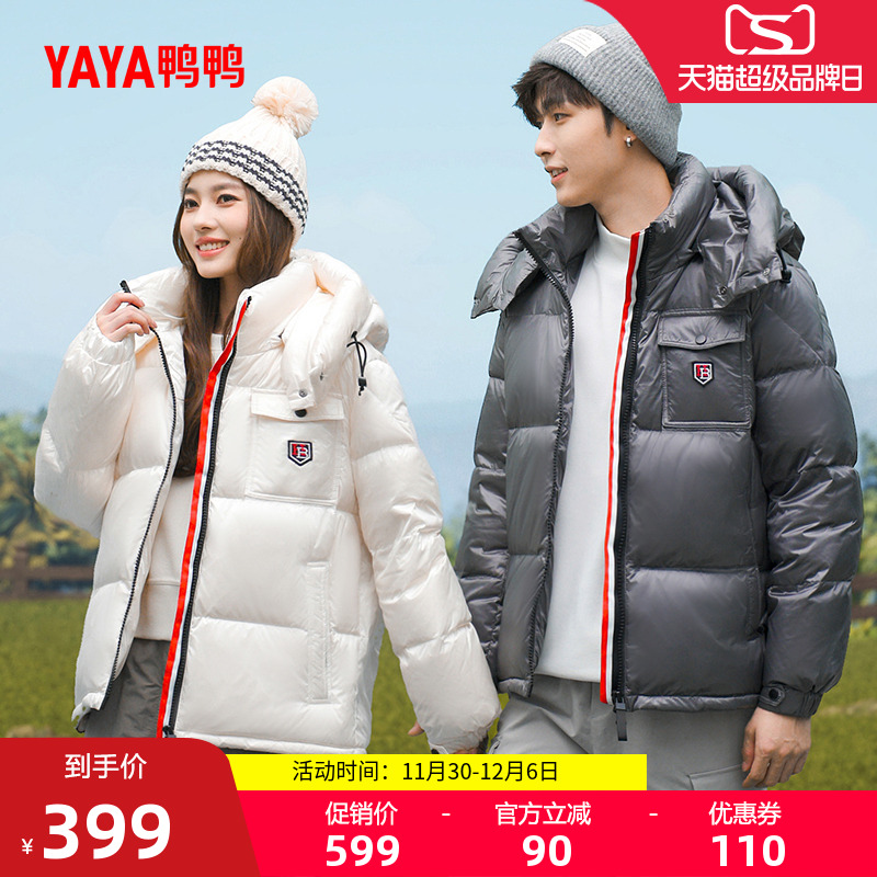鸭鸭官旗!短款加厚连帽情侣羽绒服