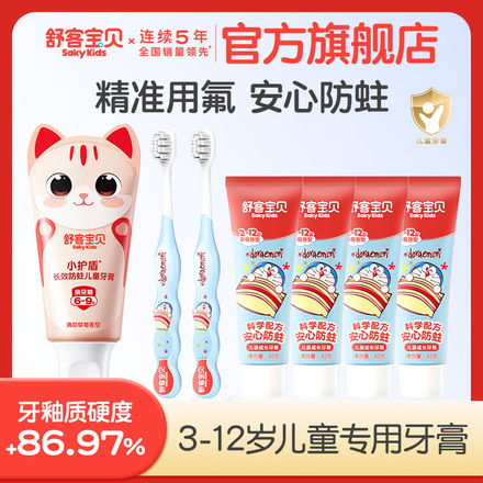 5支牙膏+2支牙刷!舒客宝贝小护盾儿童牙膏