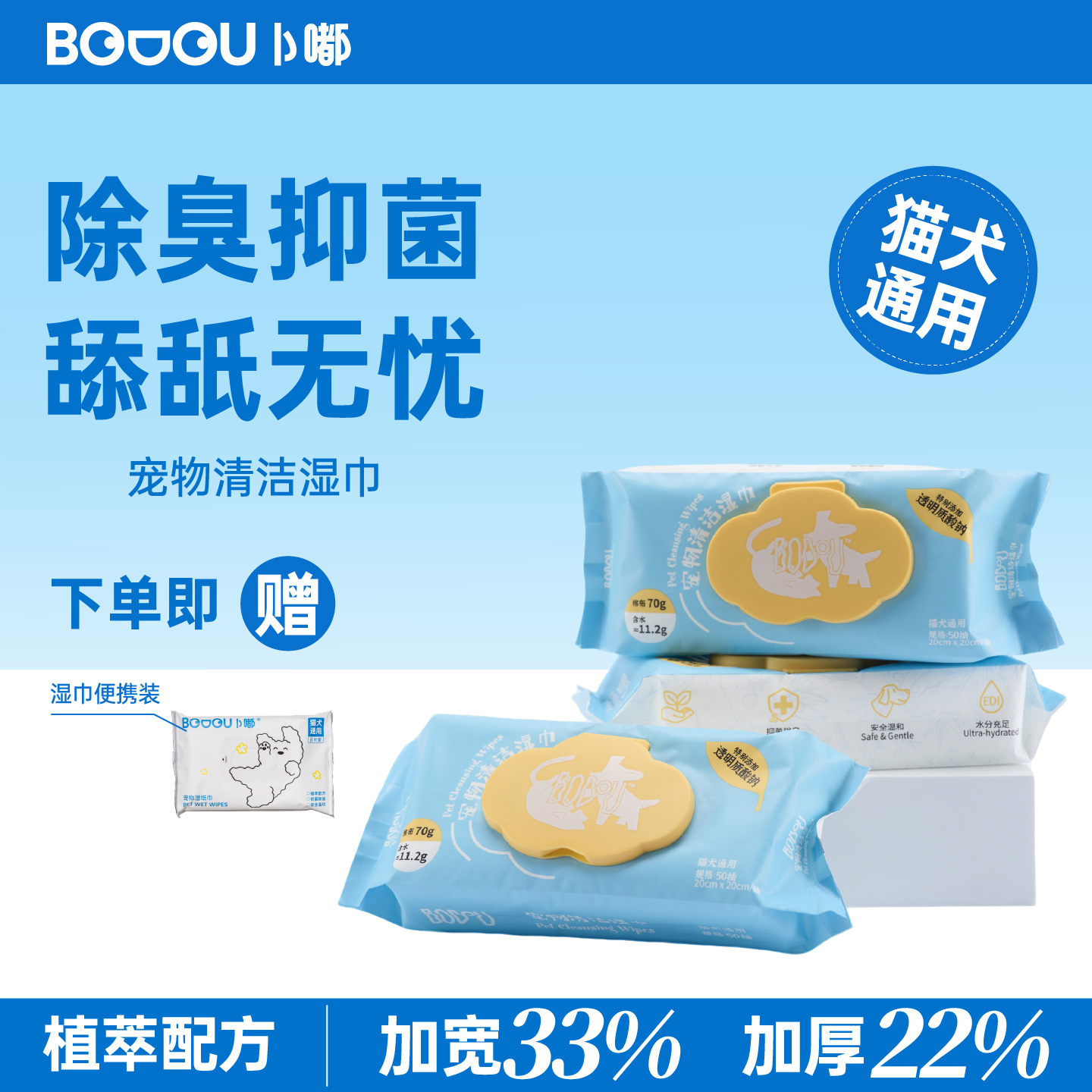 Bodou卜嘟纯水银离子宠物湿巾加大加厚50抽