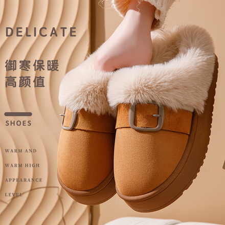 秋冬加绒保暖室内居家网红简约毛口拖鞋