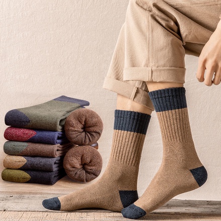 7双!加绒加厚中筒男女毛圈袜