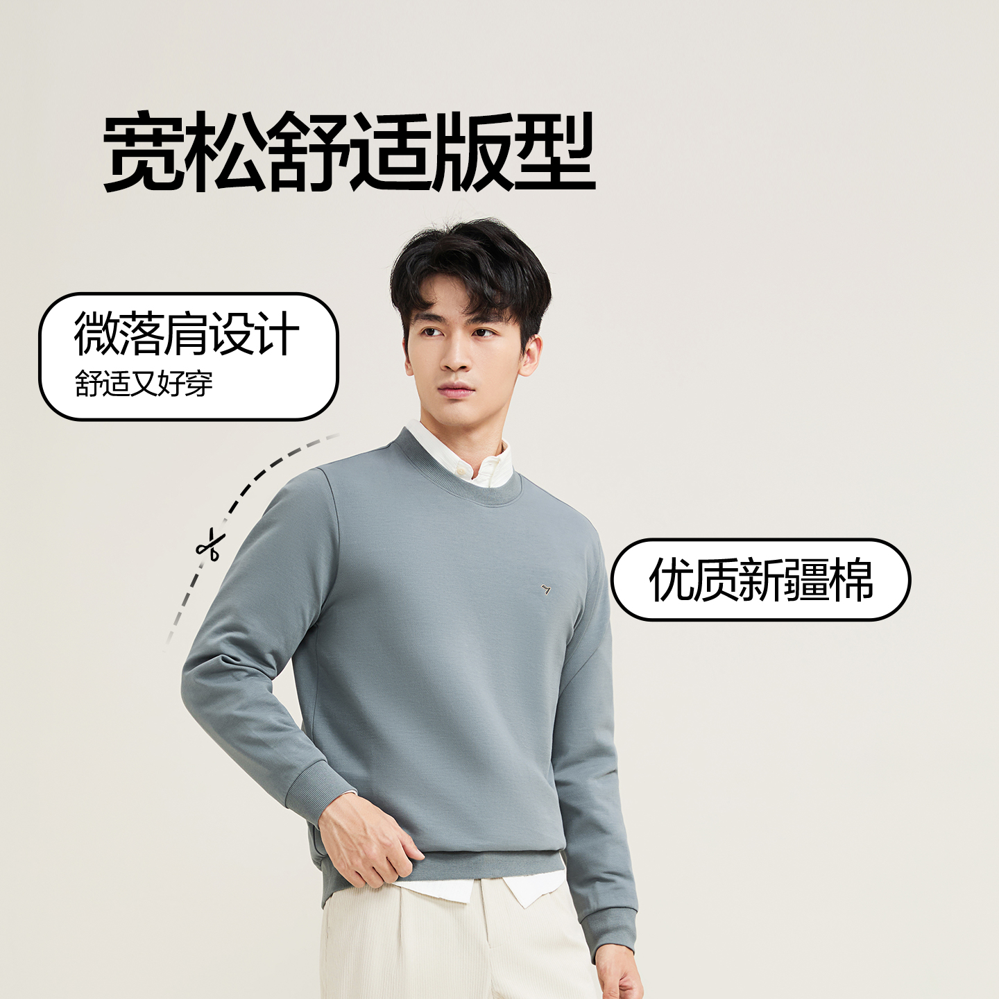 【新疆棉】柒牌男士圆领卫衣新款