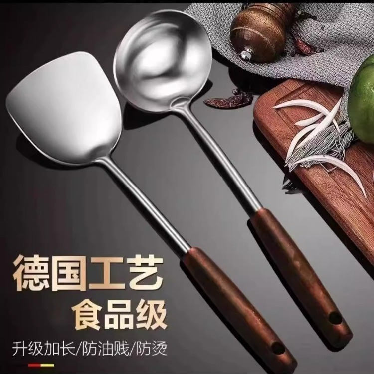 201不锈钢锅铲子,家用厨房炒勺加厚铁煎铲漏勺木手柄防烫厨具套SBT下单链接: https://uland.taobao.com/item/edetail?id=n7YPkw9UMt39AYwp58hkQGh0tP-pBx2XAdI2eJdWKxAcjA