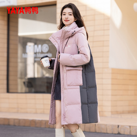 鸭鸭官旗!中长款撞色加厚连帽羽绒服