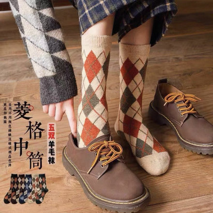 5秋冬新款羊毛袜女中筒袜保暖加厚毛圈袜