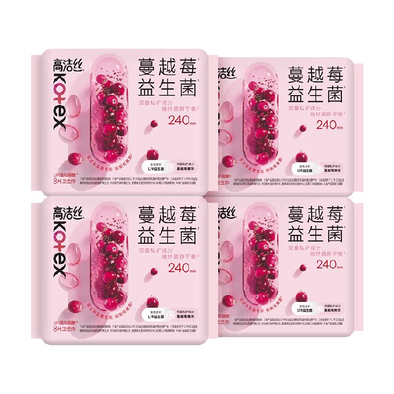 高洁丝日用卫生巾蔓越莓益生菌240*8片*4包