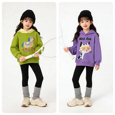 拍2件笛牧女童加绒卫衣2025新款