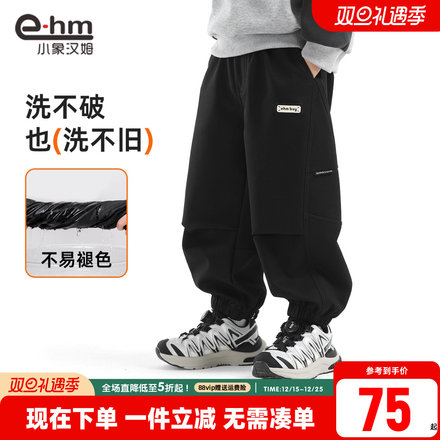 小象汉姆男童加绒长裤2025冬新款保暖潮裤