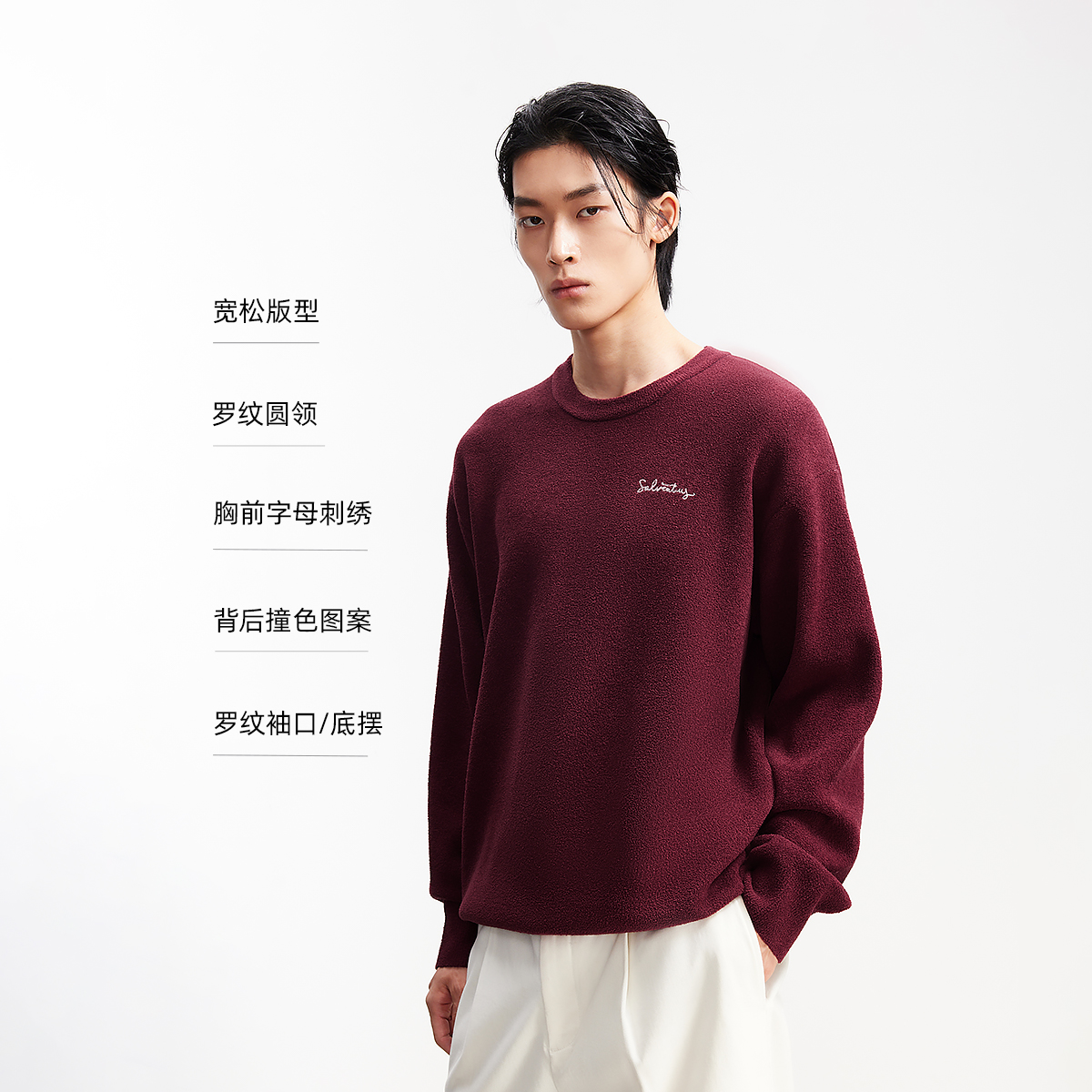 杰克琼斯宽松刺绣针织衫红色毛衣雪尼尔上衣