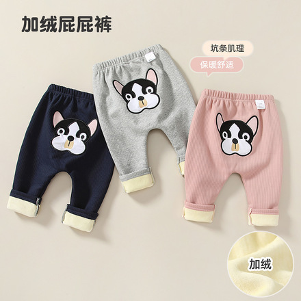 A类长款加绒卡通屁屁裤 0-3岁男女宝宝秋冬必备