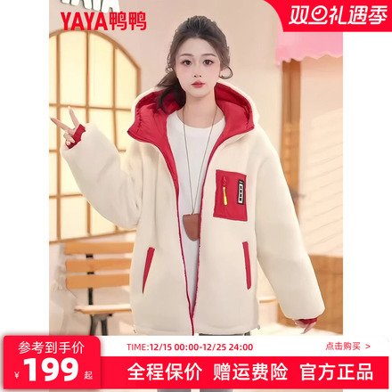 鸭鸭大牌!羊羔毛两面穿加厚羽绒服