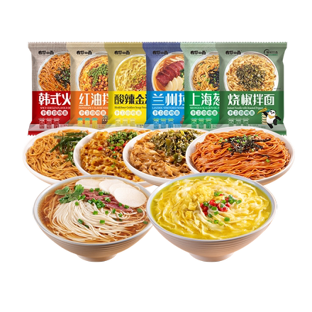 葱油拌面、红油拌面、兰州拉面、火鸡面、酸辣金汤、重庆小面、素刀削等等一共7种面!