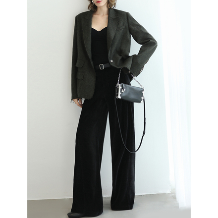 设计感拼接宽松阔腿裤黑色保暖垂坠休闲裤