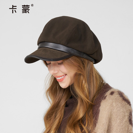 卡蒙帽子女士冬八角贝雷帽黑色报童帽
