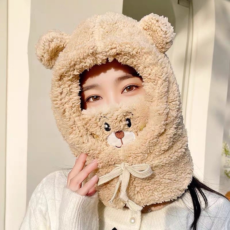 秋冬季可爱加厚一体围脖毛绒保暖护耳帽