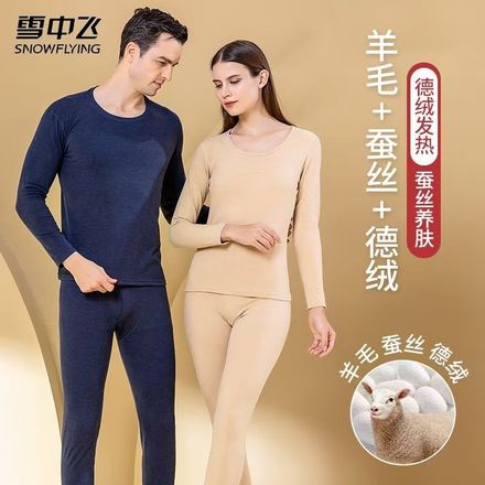 雪中飞!2件羊绒蚕丝双面磨毛保暖内衣