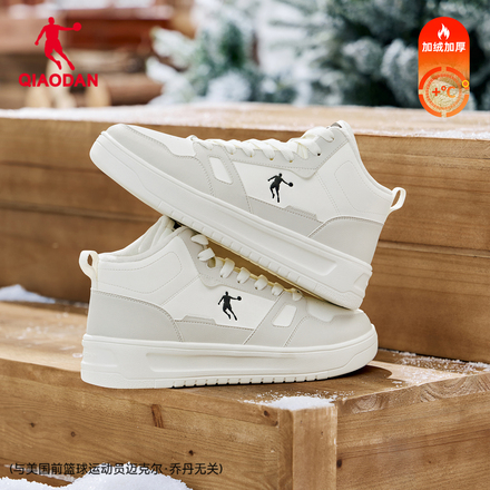 乔丹灰色皮面保暖加绒高帮男款运动板鞋