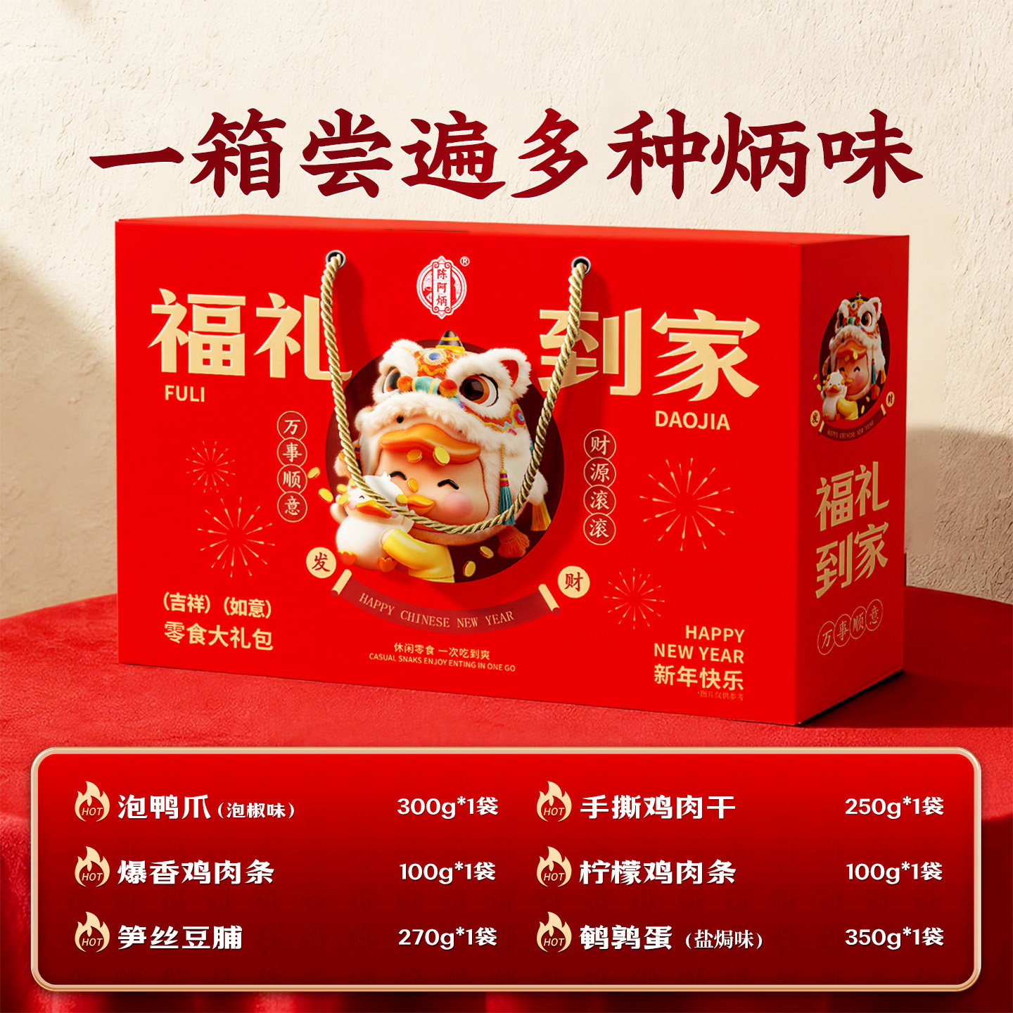 内含:泡鸭爪300g、手撕鸡肉干250g、爆香鸡肉条100g、柠檬鸡肉条100g、笋丝豆脯270g、鹌鹑蛋350g。下单链接: https://uland.taobao.com/item/edetail?id=K6NPaaeU3toKqJmv6gHm98TJtW-k3edXK7sR2JwJZ9vt3