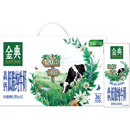 【降价拉】金典高钙低脂纯牛奶250ml*12盒