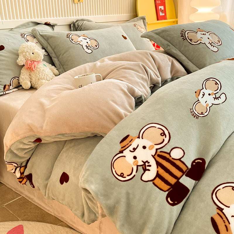 母婴级牛奶绒卡通四件套