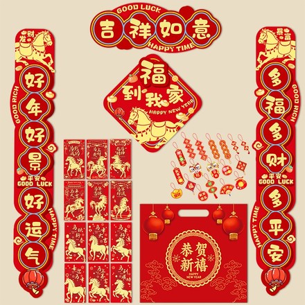 2026年马年铜纸春节新年春联37件套大礼包