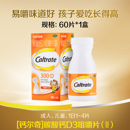 【钙尔奇】儿童钙片少年碳酸钙咀嚼片60片