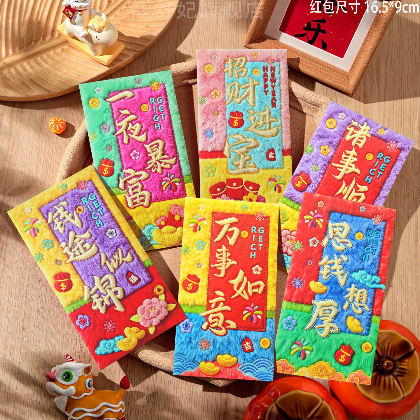 马年仿刺绣卡通红包袋春节福利是