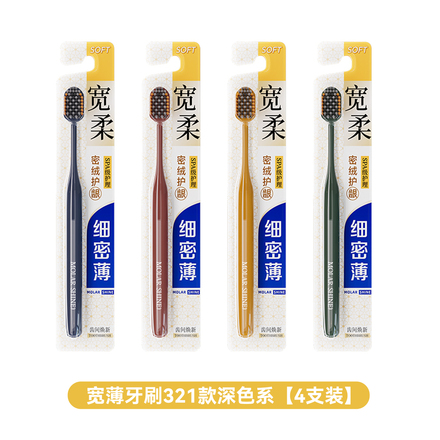 【叠加淘金币8.91元】宽薄牙刷321款深色系【4支装】宽薄宽头设计,护齿更贴心,三重刷头+软毛,温和清洁不伤牙龈,男女通用,情侣家用都合适!下单链接: https://uland.taobao.com/item/edetail?id=jBpdj8mh0tJRWvRe8vUBebHJte-88DbxaKC5YJ8z6pWiY