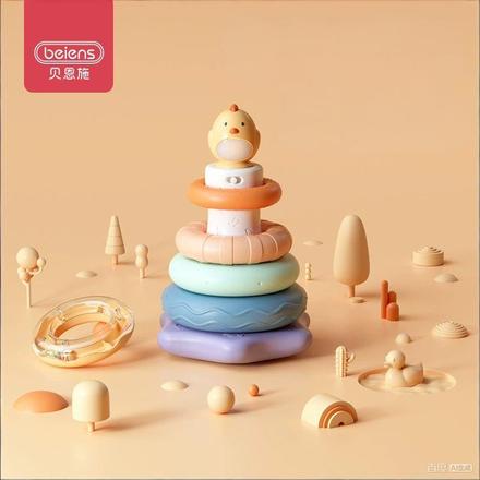 贝恩施儿童叠叠乐婴儿彩虹塔套圈玩具