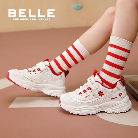 百丽童鞋2025新款刺绣女童老爹运动鞋