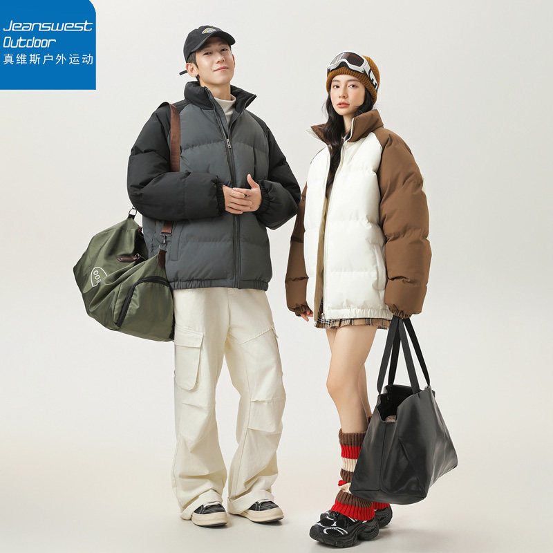 真维斯户外运动情侣拼接撞色立领棉服