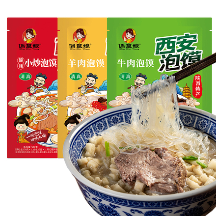 清真羊肉泡馍西安正宗牛肉小炒煮馍532g加量装