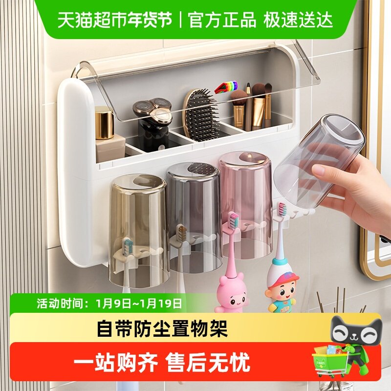【佳帮手】防尘牙刷置物架,免打孔壁挂式牙缸漱口杯,家庭套装牙杯架子