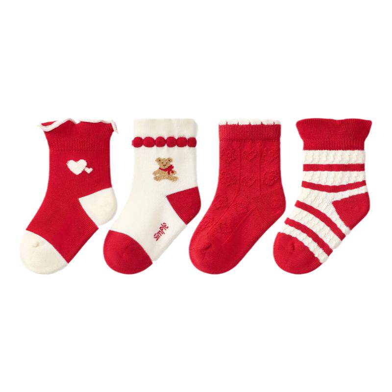 尼多熊儿童红袜子秋冬棉袜宝宝红色袜女童新