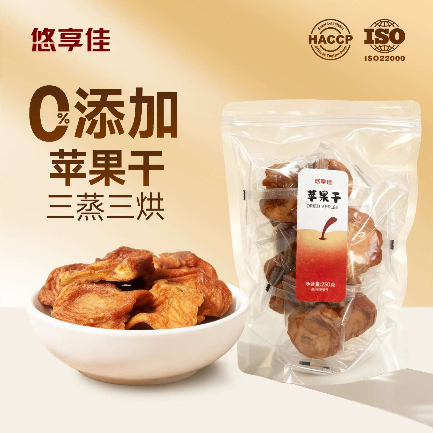 悠享佳烟台红富士苹果干250g,三蒸三烘无添加苹果果脯零食独立包装下单链接: https://uland.taobao.com/item/edetail?id=axqJGaYfotM9nP39A3IQAxhjty-v6PKX7dC8e943wMDIp